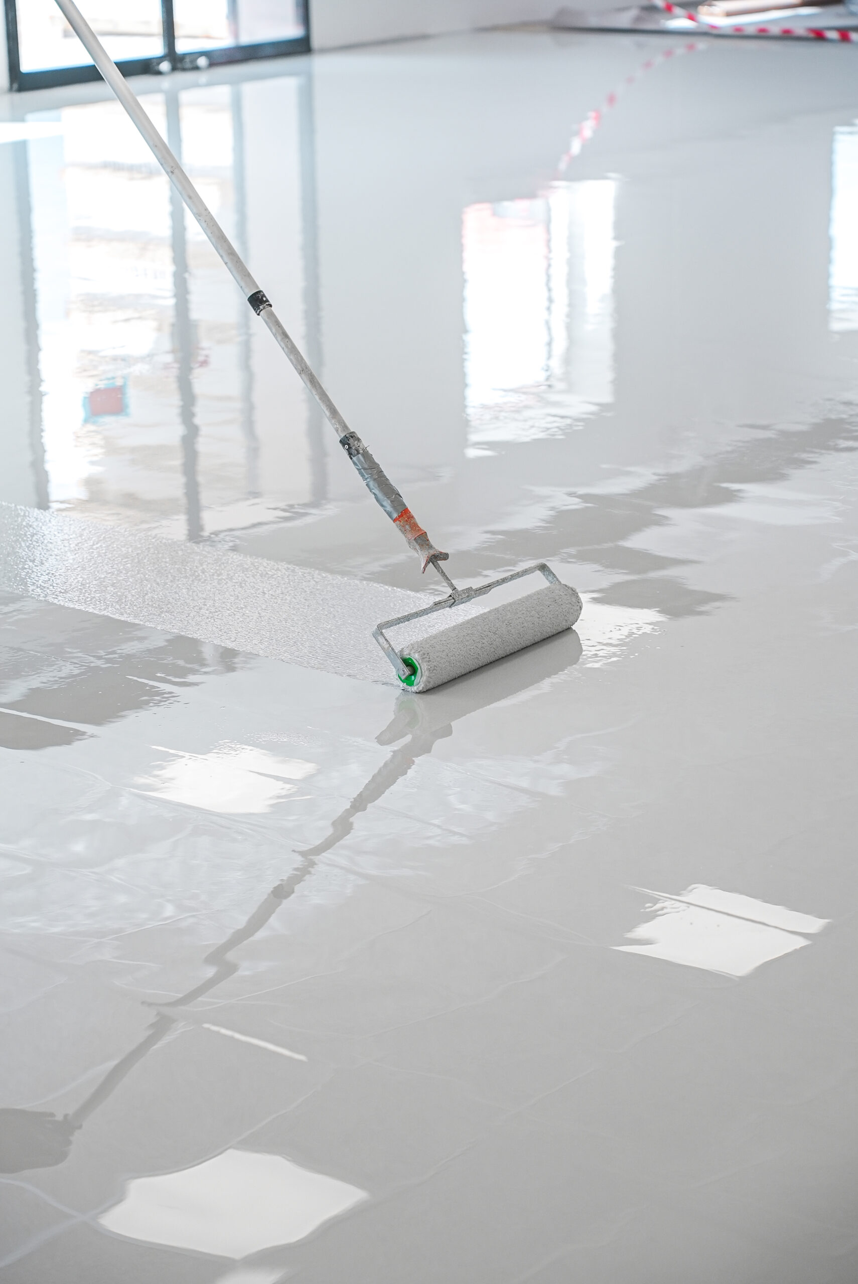 Herefter primes gulvet, så belægningen binder korrekt. Når underlaget er klar, lægger vi selve belægningen i flere lag, alt efter hvor stærkt gulvet skal være.