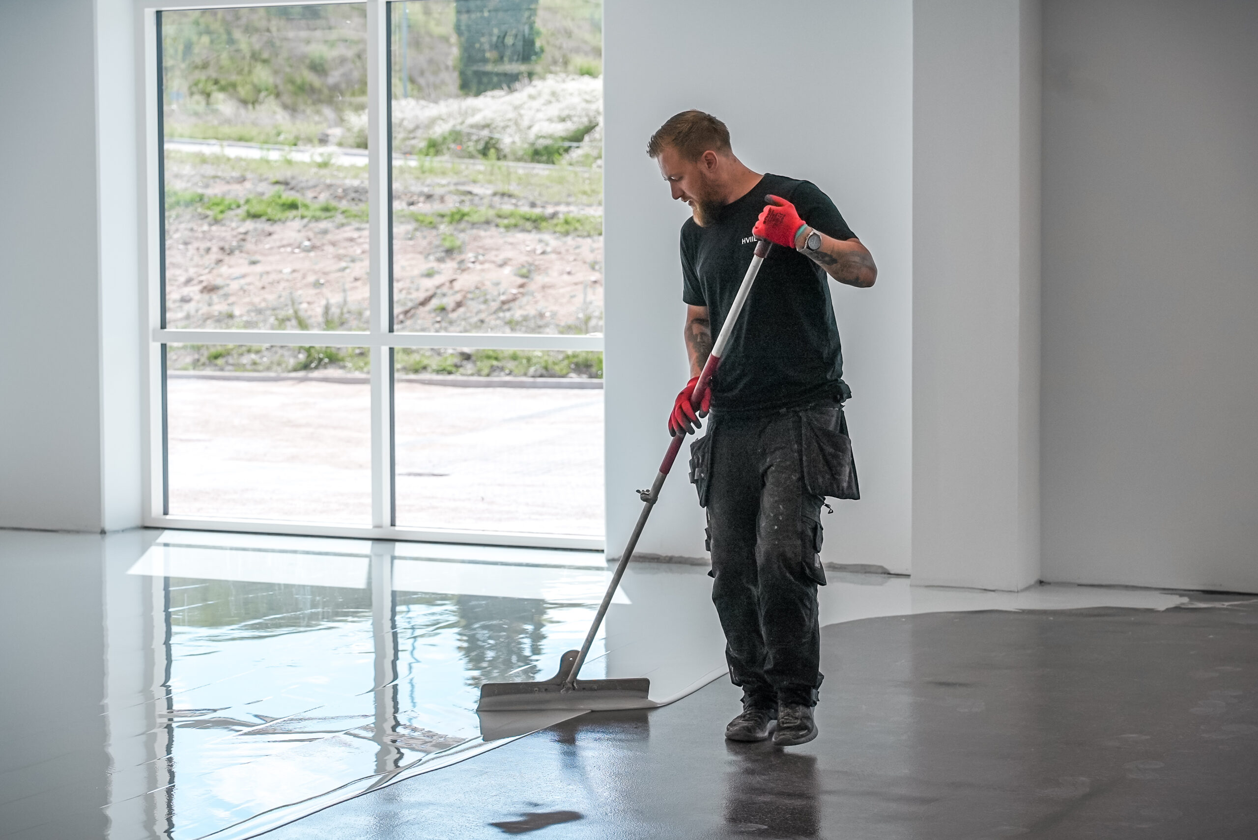Den fugefri overflade sikrer, at olie og snavs ikke kan trænge ned i gulvet, og at rummet er nemt at holde rent. En korrekt opbygning betyder også længere levetid og bedre holdbarhed, selv ved meget høj belastning.